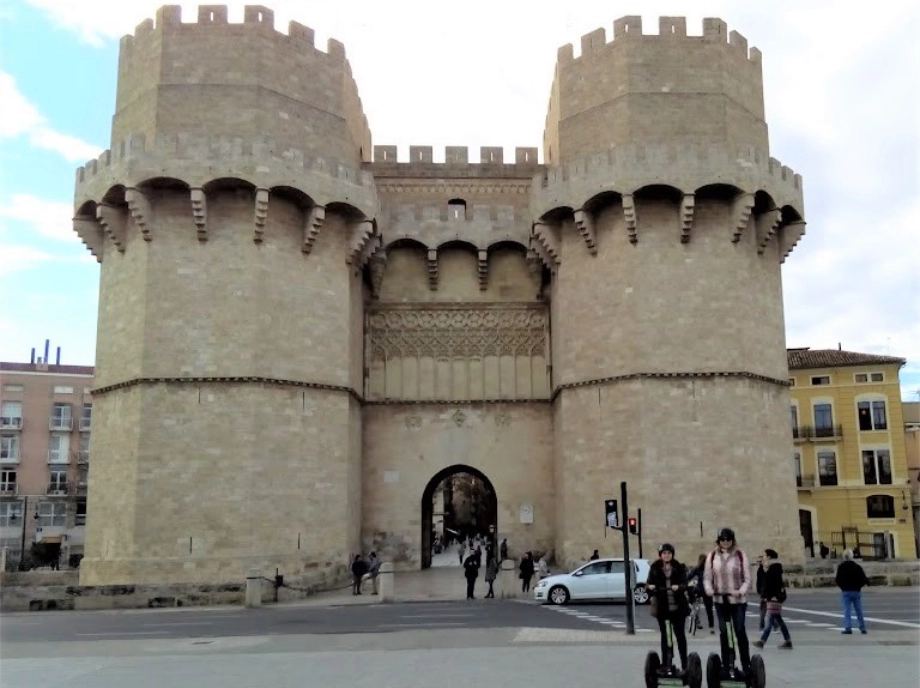 Underneath the Serranos Towers, in the Plaza de los Fueros